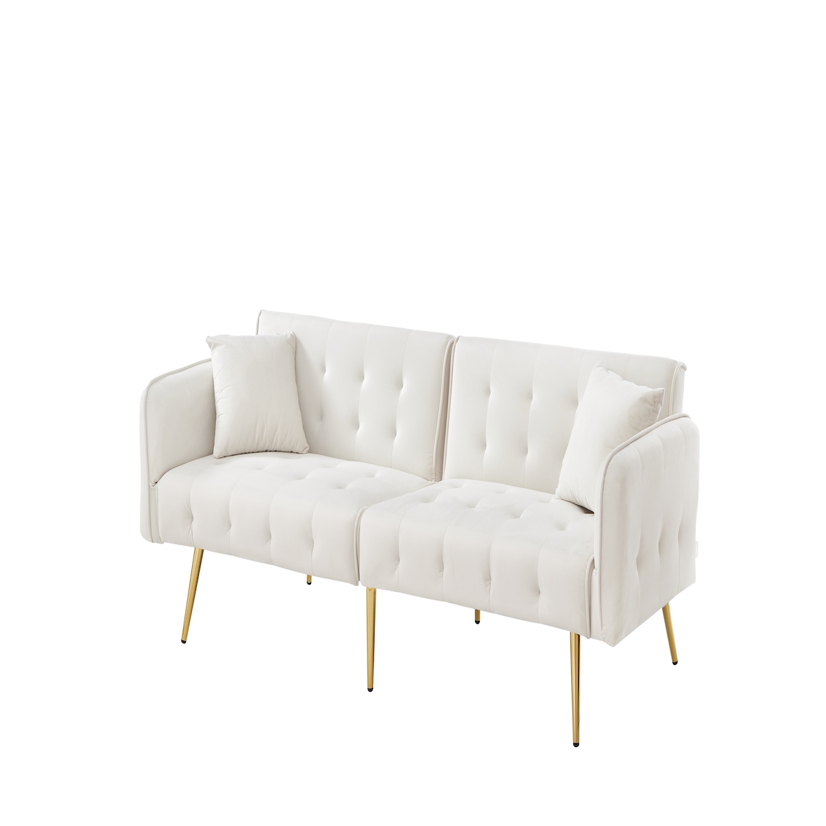 Zweisitzer Sofabett 70x178x82 mit verstellbaren Rückenlehnen in Antikweiß – Veloursbezug, Multifunktional, Gästebett, 6 vergoldete Metallfüße