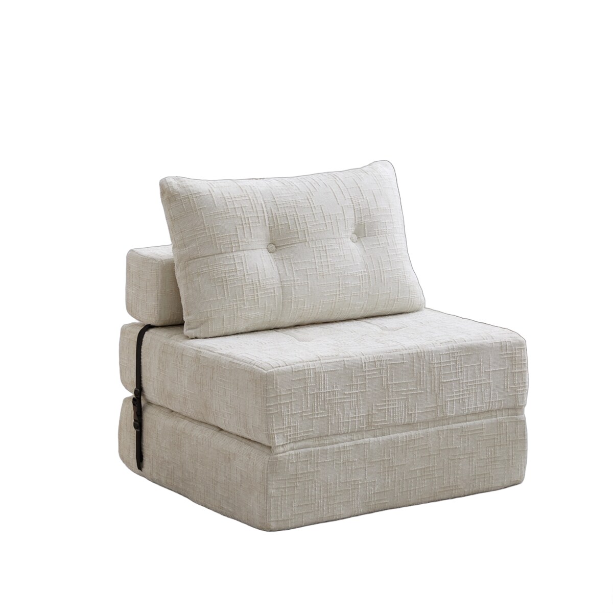 MODFU Klappbares Schlafsofa 57x79x79 Multifunktion Couch Gästebett Sofa mit Kopf- & Lumbalkissen Hochdichter Schaum Chenille Beige