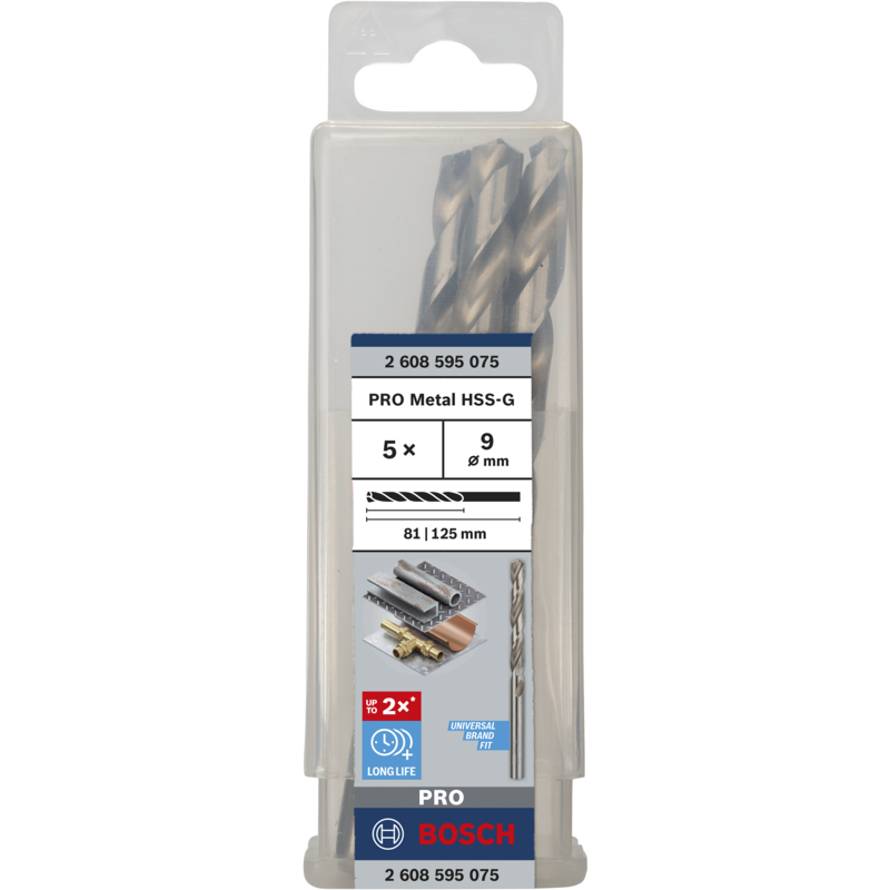 Bosch Professional PRO Metal HSS-G Spiralbohrer, Ø 9mm Bohrer, 5 Stück