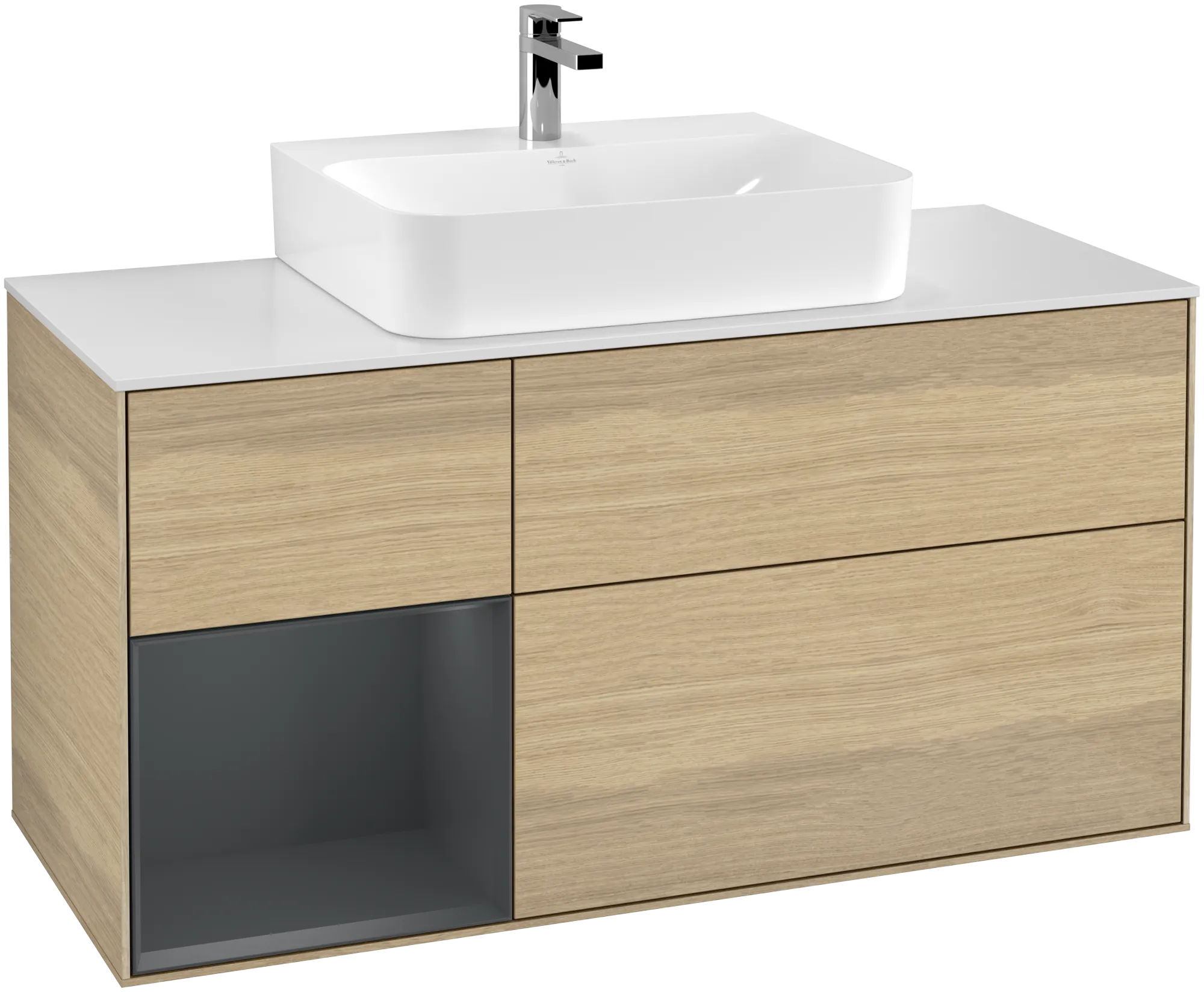 Villeroy & Boch Finion Waschbeckenunterschrank G16, 1200x603x501mm, Midnight Blue Matt Lacquer / Oak Veneer / Glass Black Matt