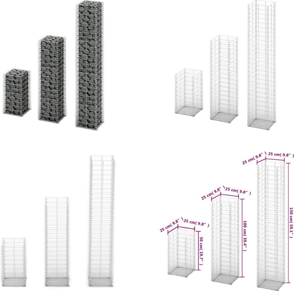 vidaXL Gabionen Set 3 tlg. Verzinkter Draht - Gabionenkorb - Gabionenkörbe - Gabionenwand - Gabionenwände