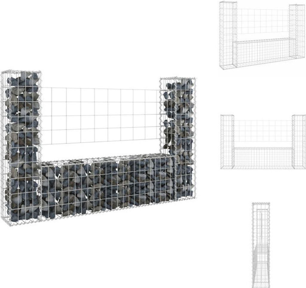 vidaXL Gabionenkorb U-Form mit 2 Säulen Eisen 140x20x100 cm - Zaunfelder