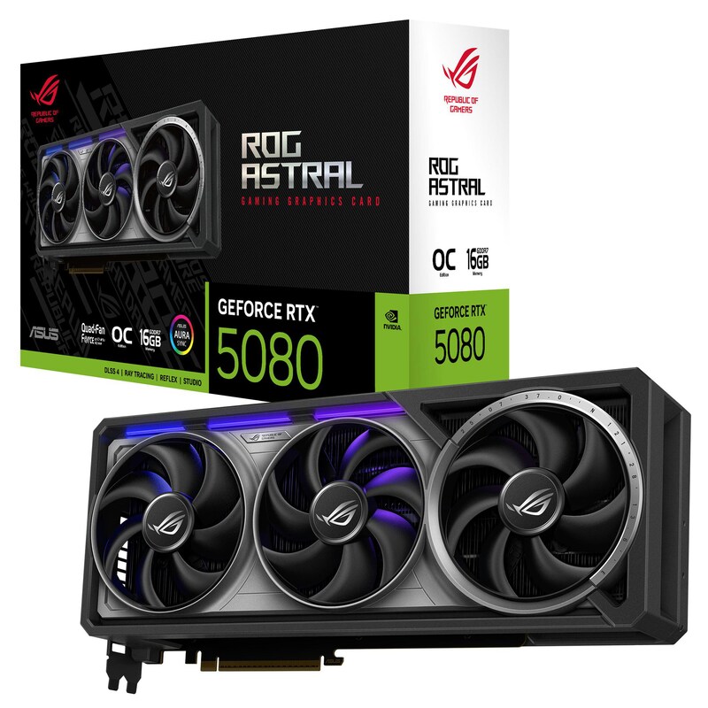 ASUS GeForce RTX 5080 ROG ASTRAL GAMING OC Grafikkarte, DLSS 4, 3x DisplayPort