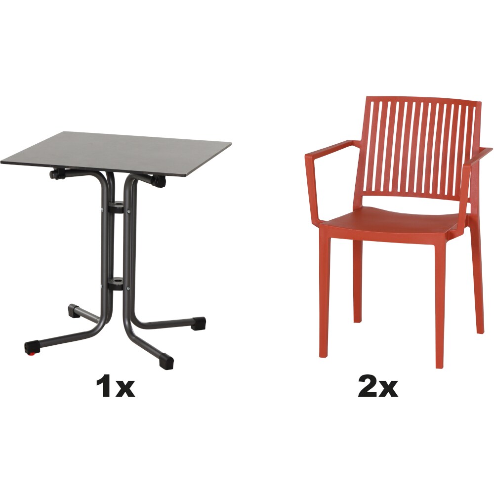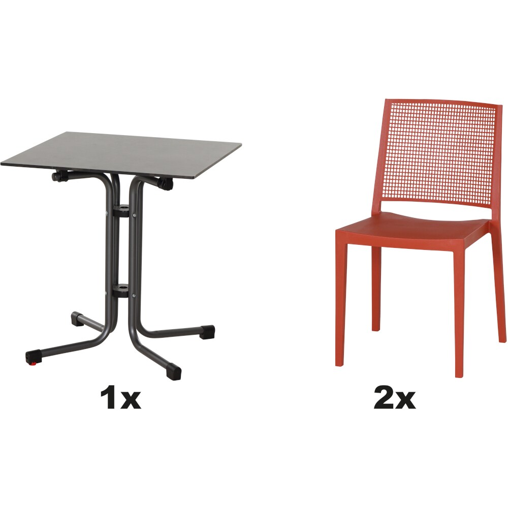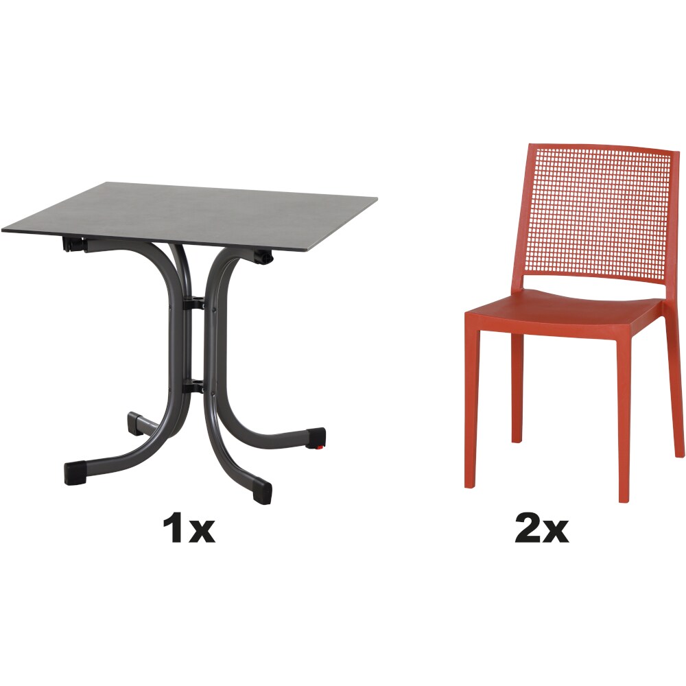 SIENA GARDEN Urban Lights Set 3teilig Square Stuhl gastrotauglich brick mit Tisch Sola 80x80
