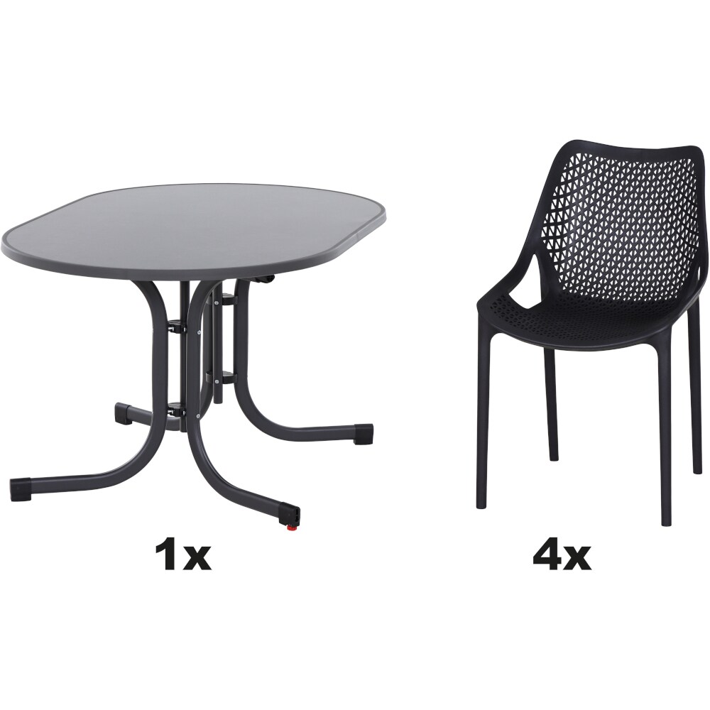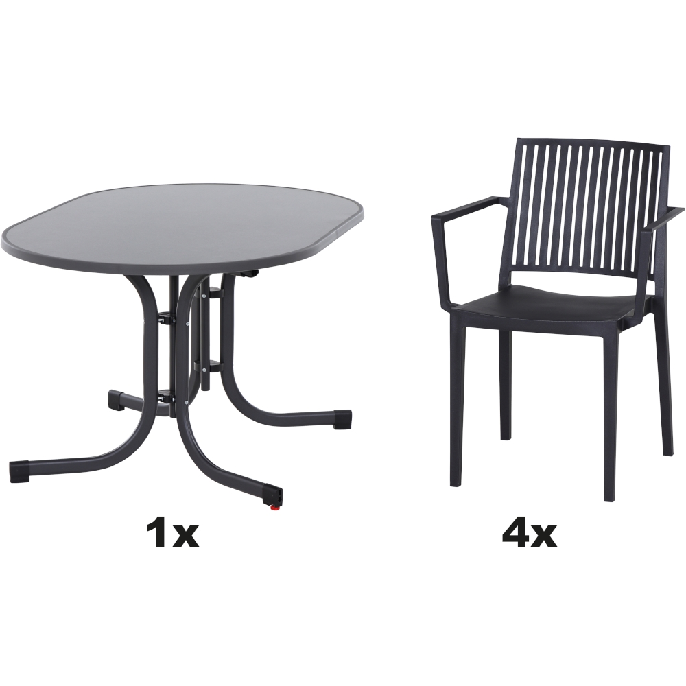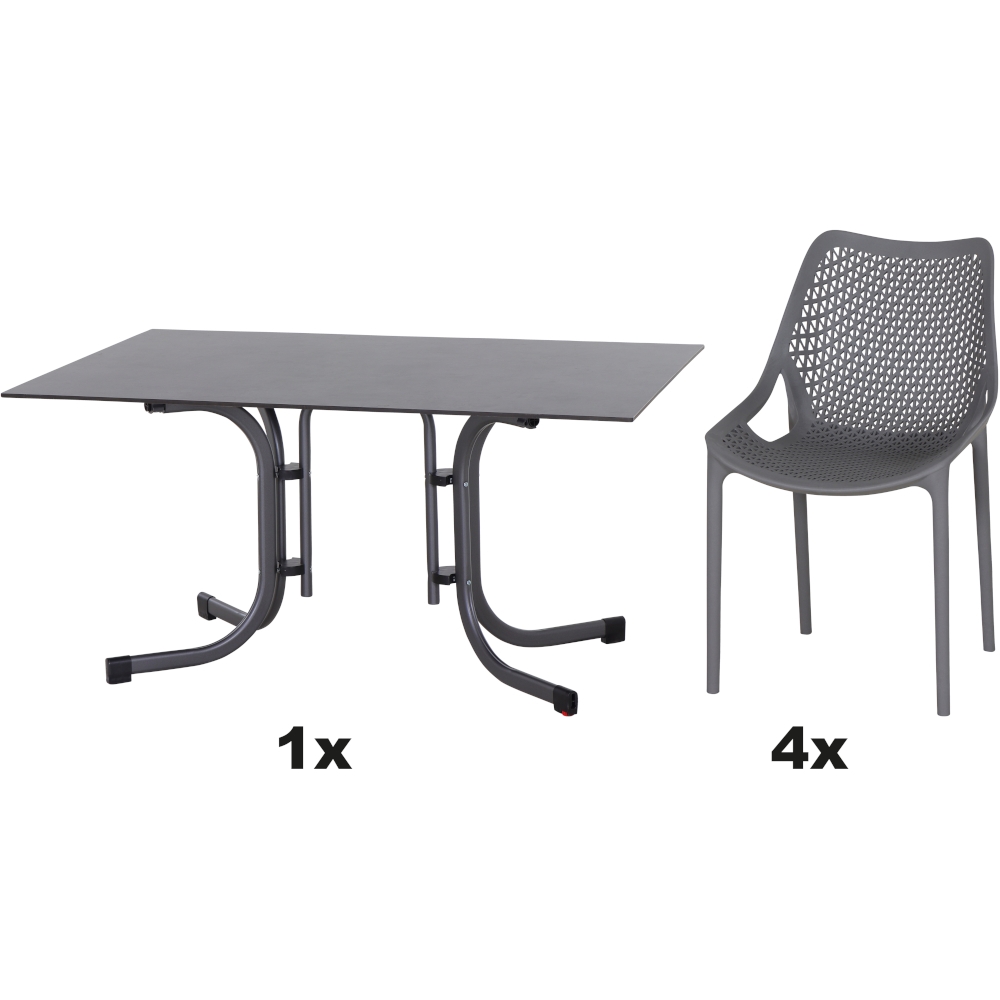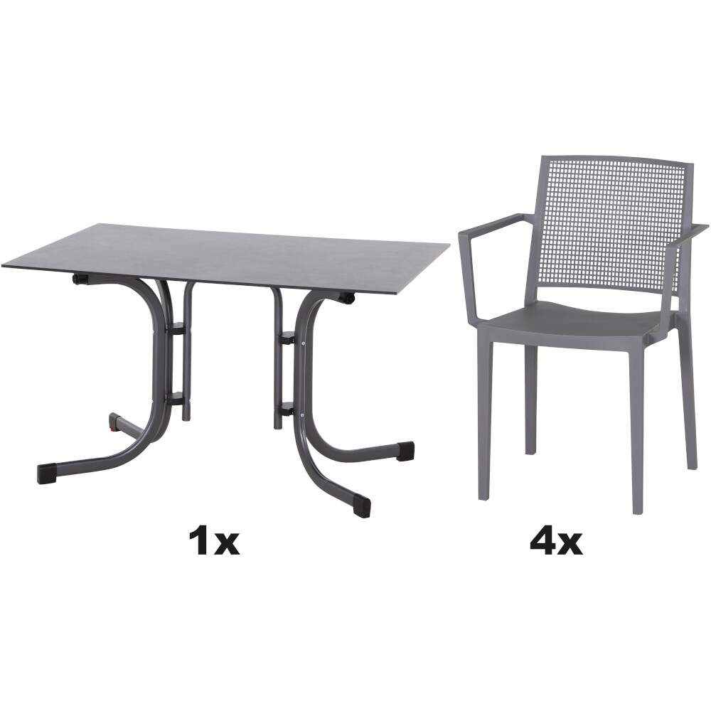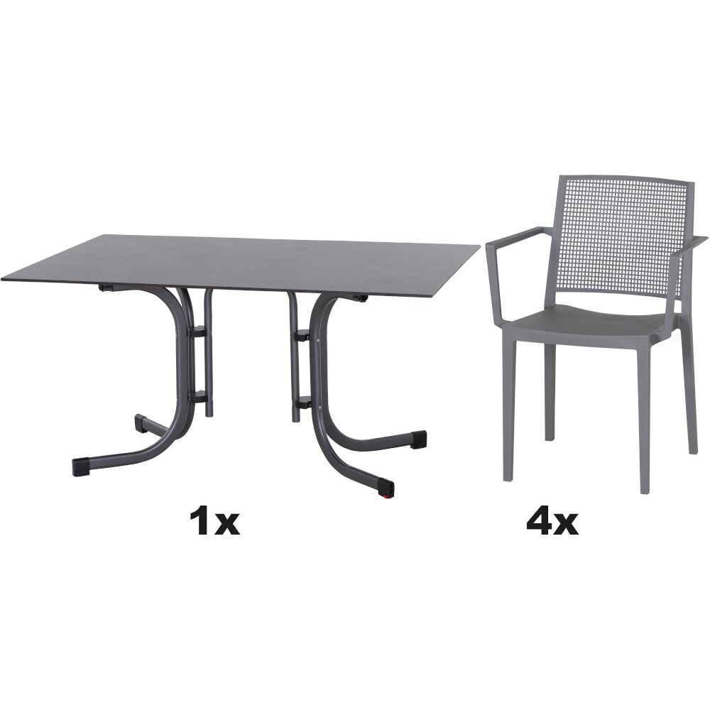 SIENA GARDEN Urban Lights Set 5teilig District gastrotauglich anthrazit mit Tisch Paco 140x90
