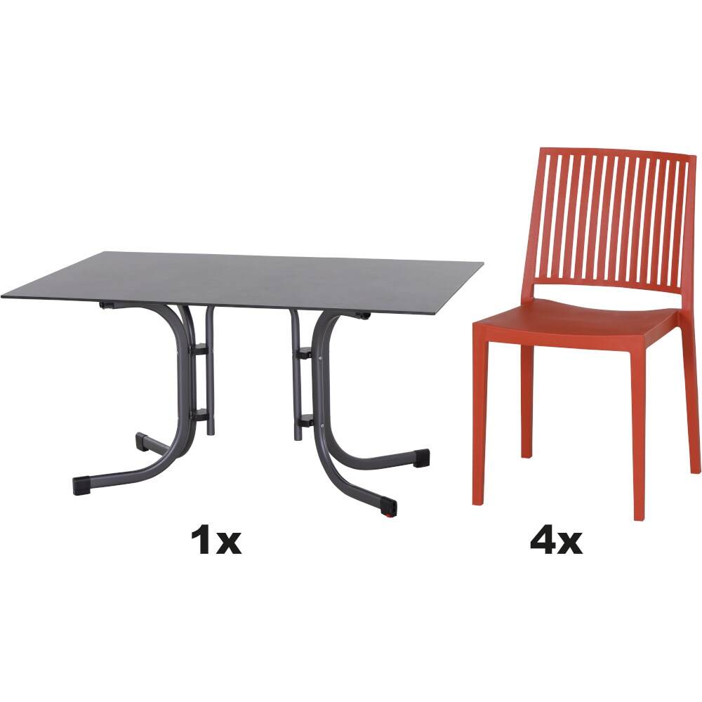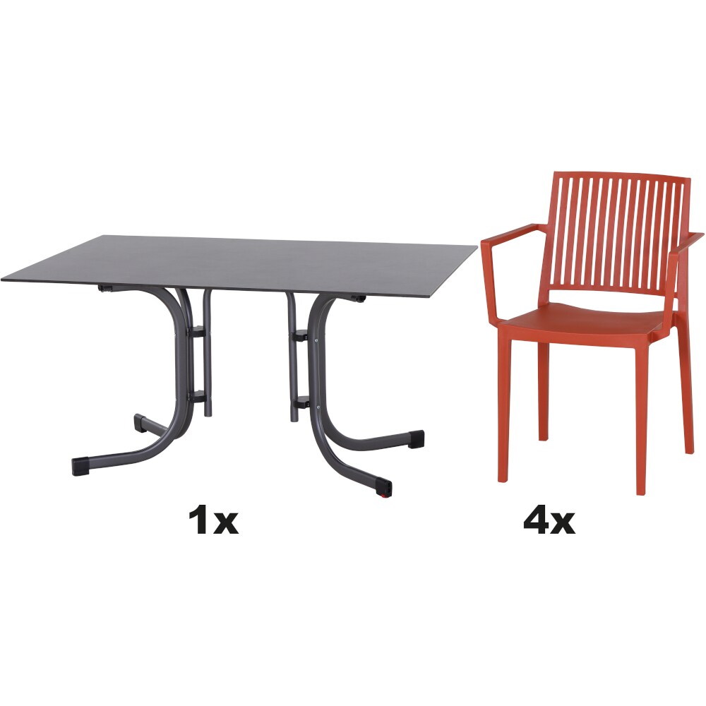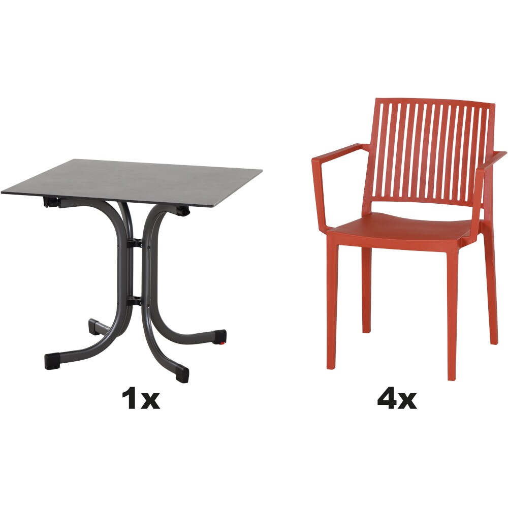 SIENA GARDEN Urban Lights Set 5teilig Lane Stuhl gastrotauglich brick mit Tisch Sola 140x90