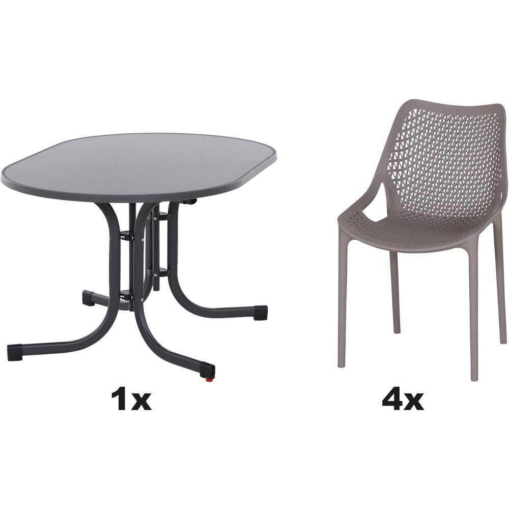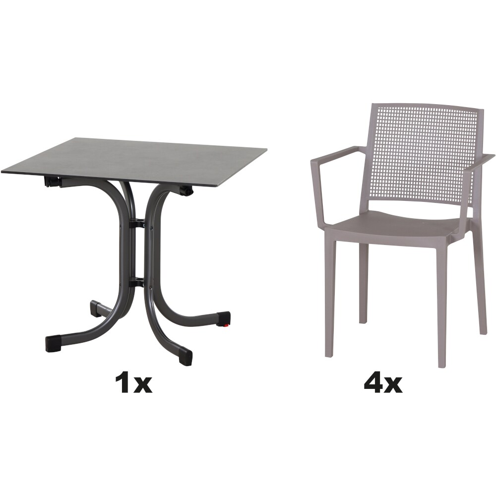 SIENA GARDEN Urban Lights Set 5teilig Lane Stuhl gastrotauglich taupe mit Tisch Paco 140x90