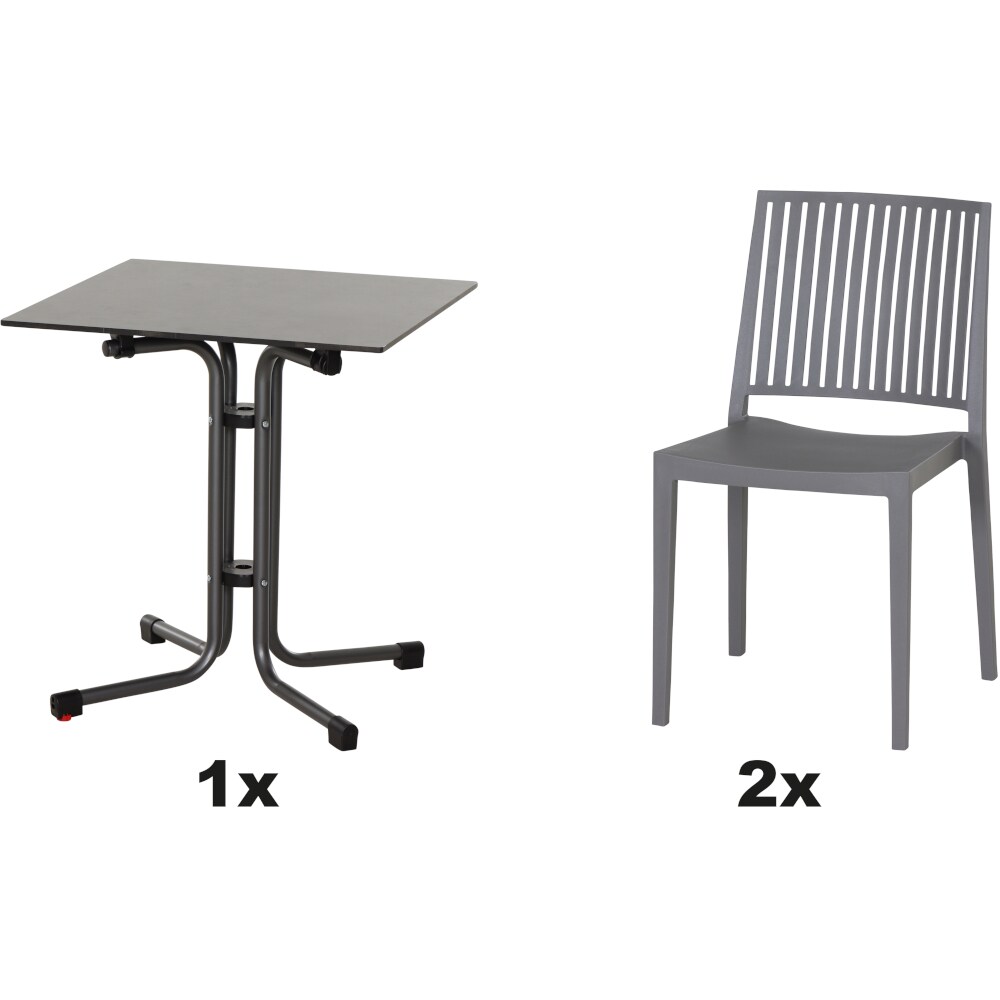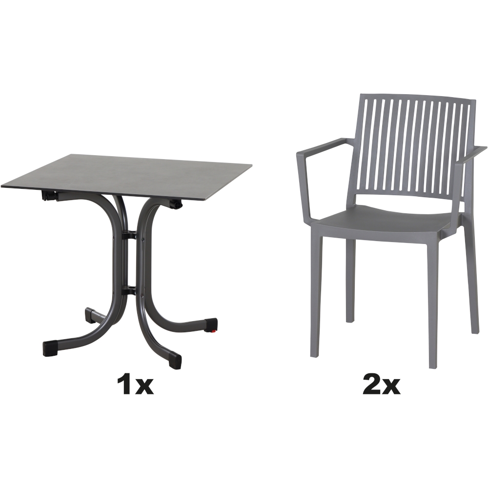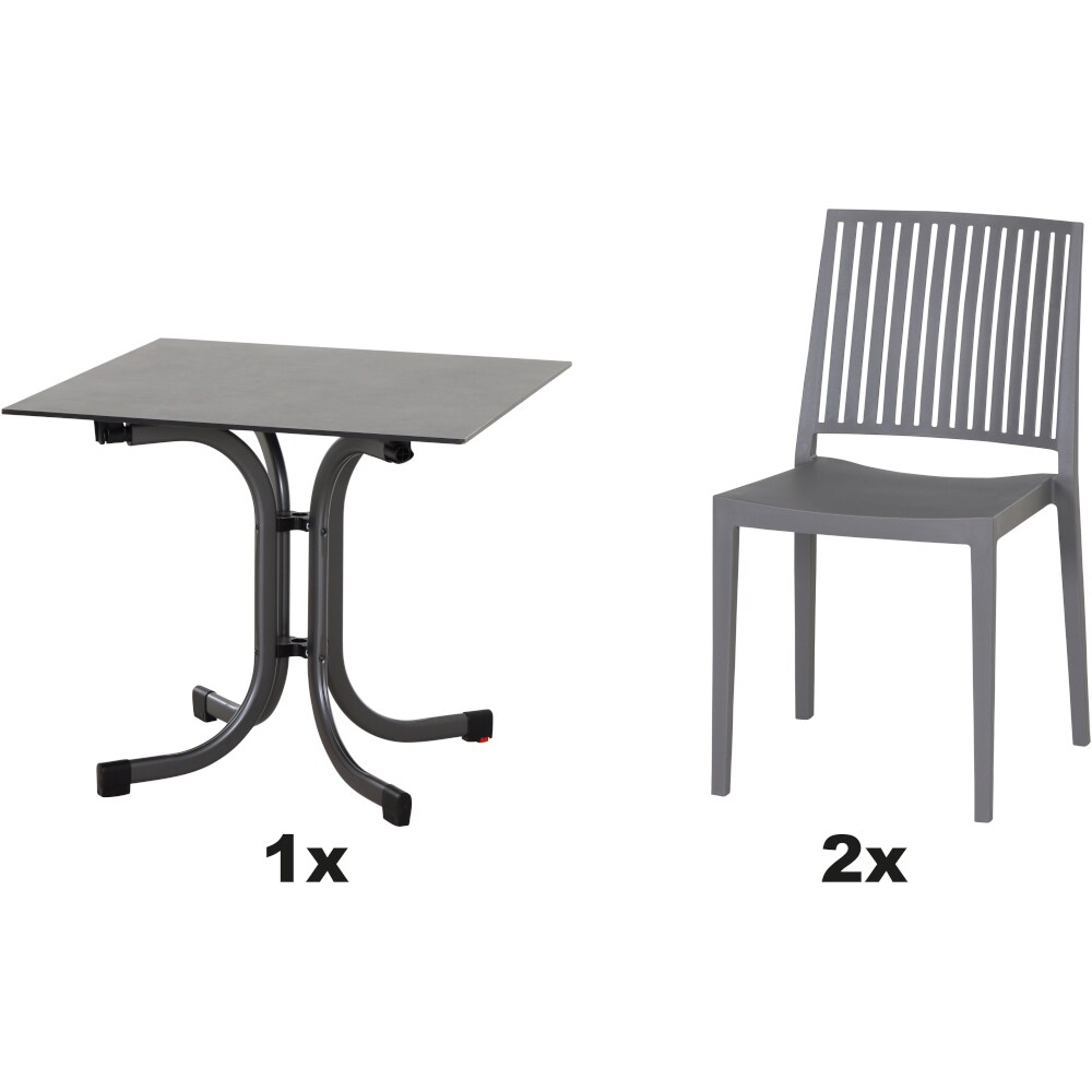 SIENA GARDEN Urban Lights Set 3teilig Lane Stuhl gastrotauglich grau mit Tisch Sola 80x80