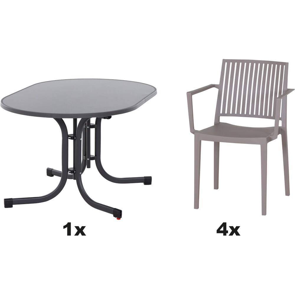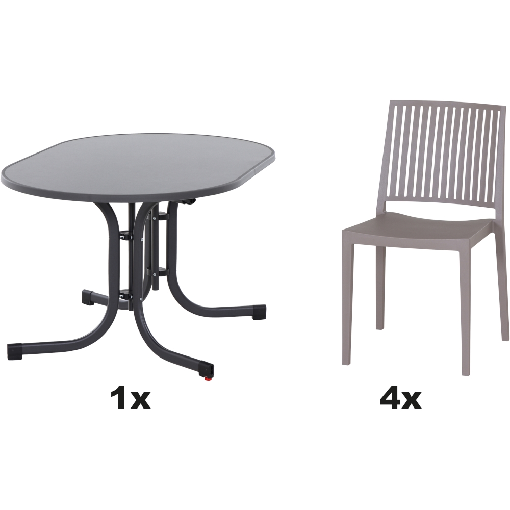 SIENA GARDEN Urban Lights Set 5teilig District gastrotauglich grau mit Tisch Sola 140x90