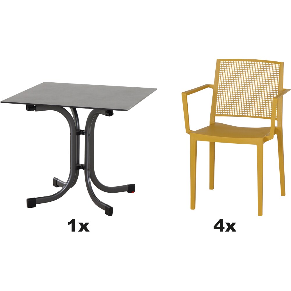 SIENA GARDEN Urban Lights Set 5teilig Square Sessel gastrotauglich mustard mit Tisch Sola 80x80