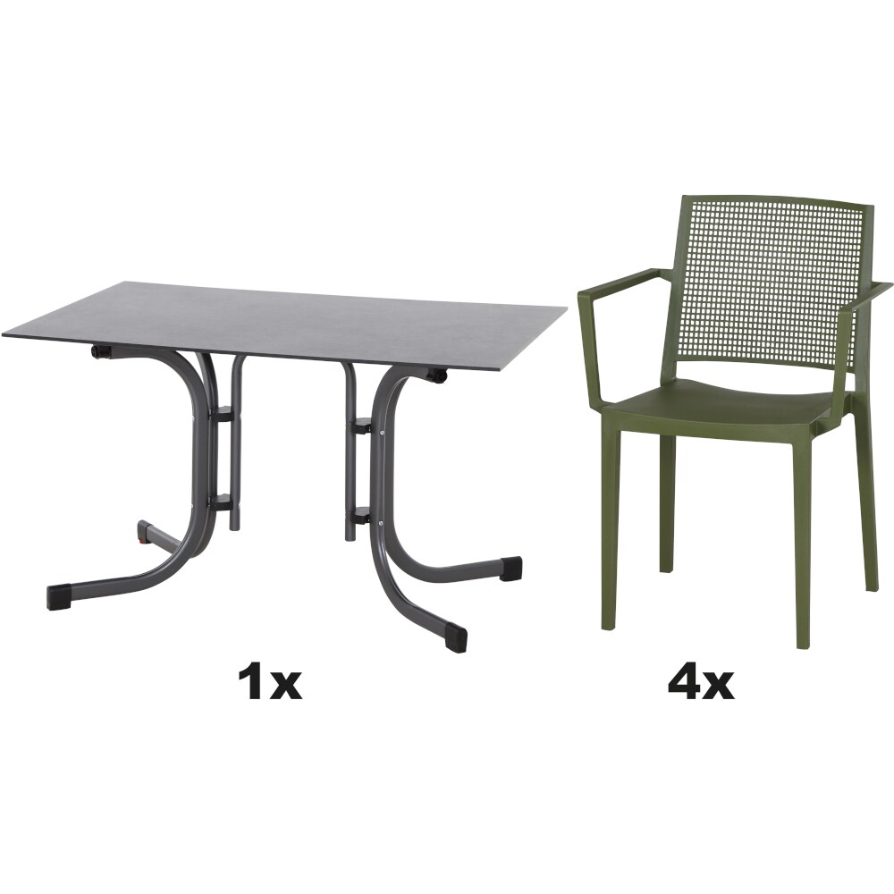 SIENA GARDEN Urban Lights Set 5teilig Square Sessel gastrotauglich olive mit Tisch Sola 120x80