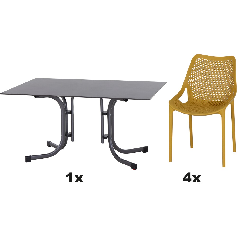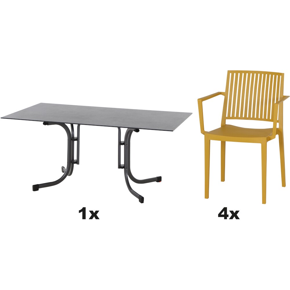 SIENA GARDEN Urban Lights Set 5teilig Lane Sessel gastrotauglich mustard mit Tisch Sola 160x90