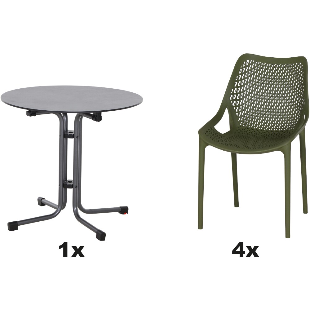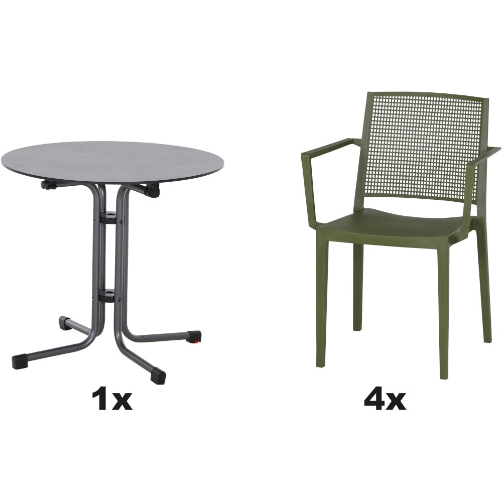 SIENA GARDEN Urban Lights Set 5teilig Square Sessel gastrotauglich olive mit Tisch Sola Ø80