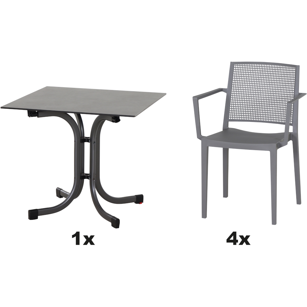 SIENA GARDEN Urban Lights Set 5teilig Square Sessel gastrotauglich grau mit Tisch Sola 80x80