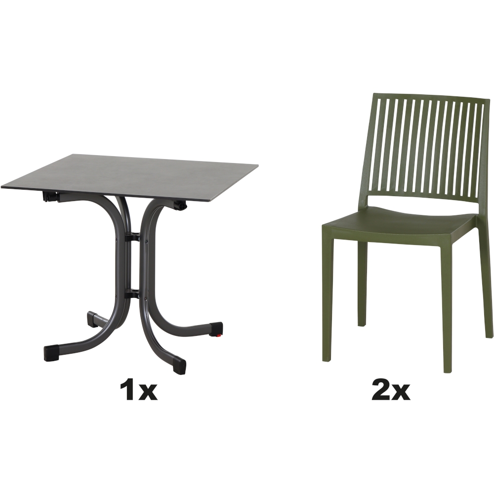 SIENA GARDEN Urban Lights Set 3teilig Lane Stuhl gastrotauglich olive mit Tisch Sola 80x80