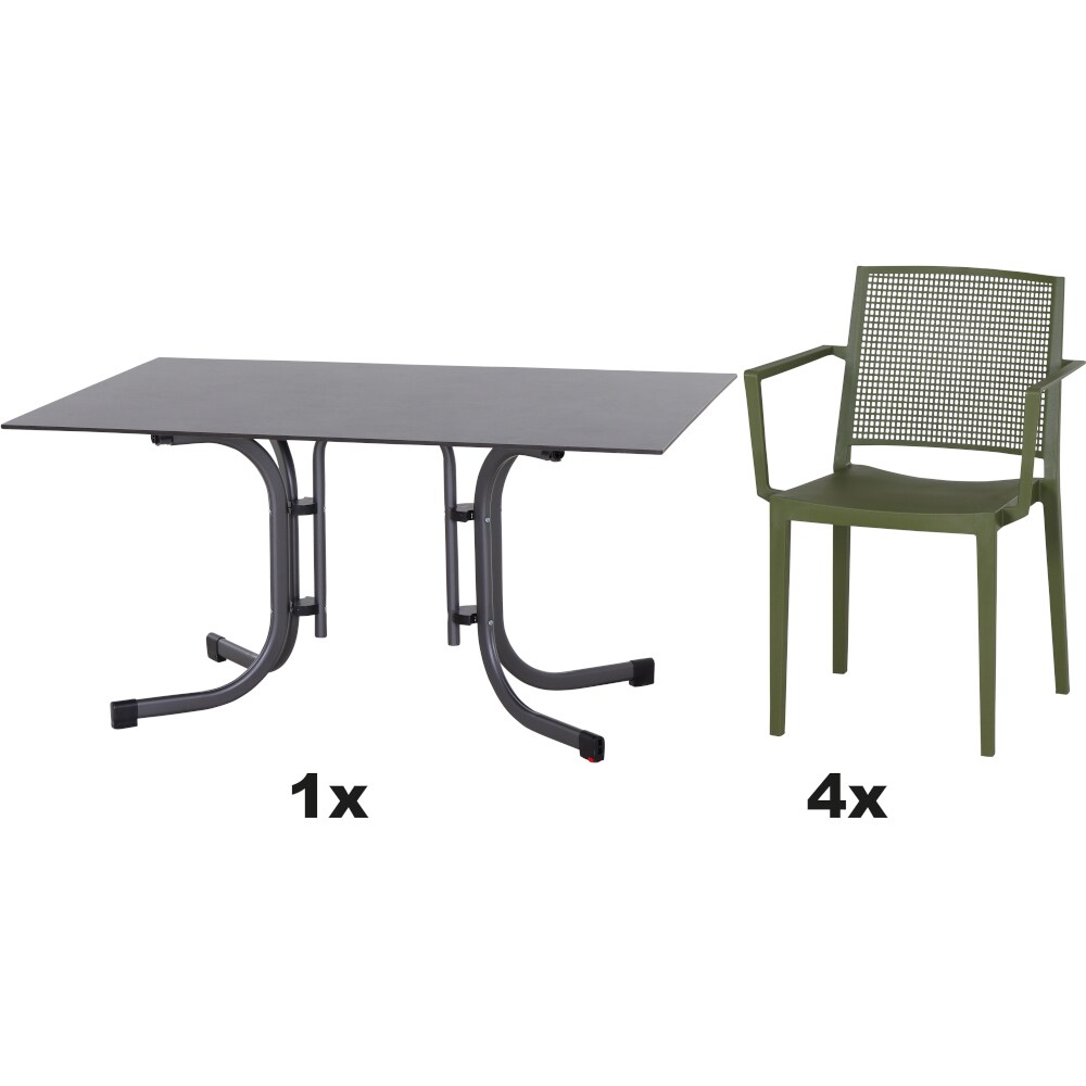 SIENA GARDEN Urban Lights Set 5teilig Square Sessel gastrotauglich olive mit Tisch Sola 140x90