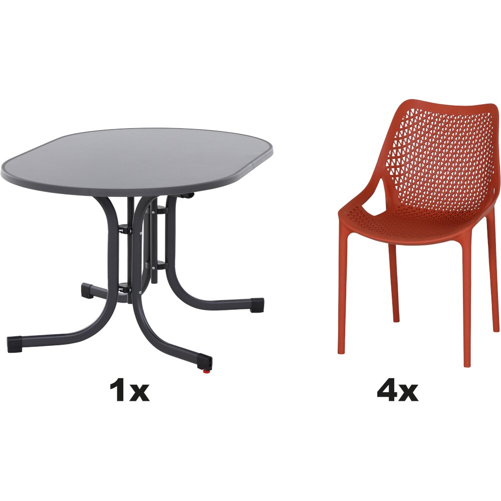 SIENA GARDEN Urban Lights Set 5teilig Lane Stuhl gastrotauglich brick mit Tisch Sola Ø80