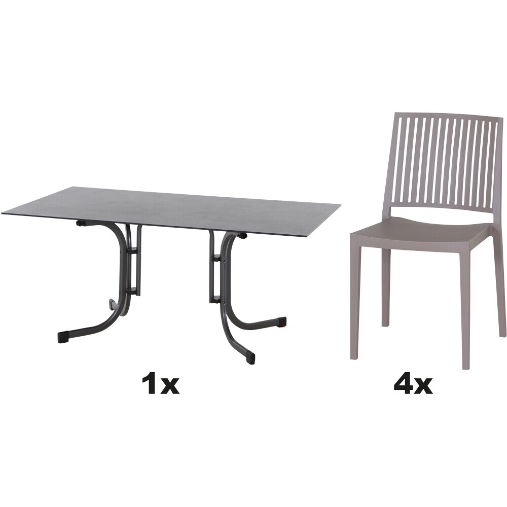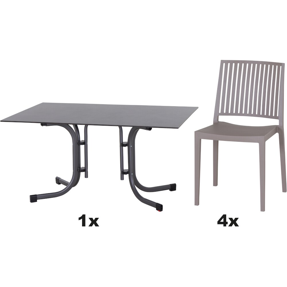 SIENA GARDEN Urban Lights Set 5teilig Lane Stuhl gastrotauglich taupe mit Tisch Sola 160x90