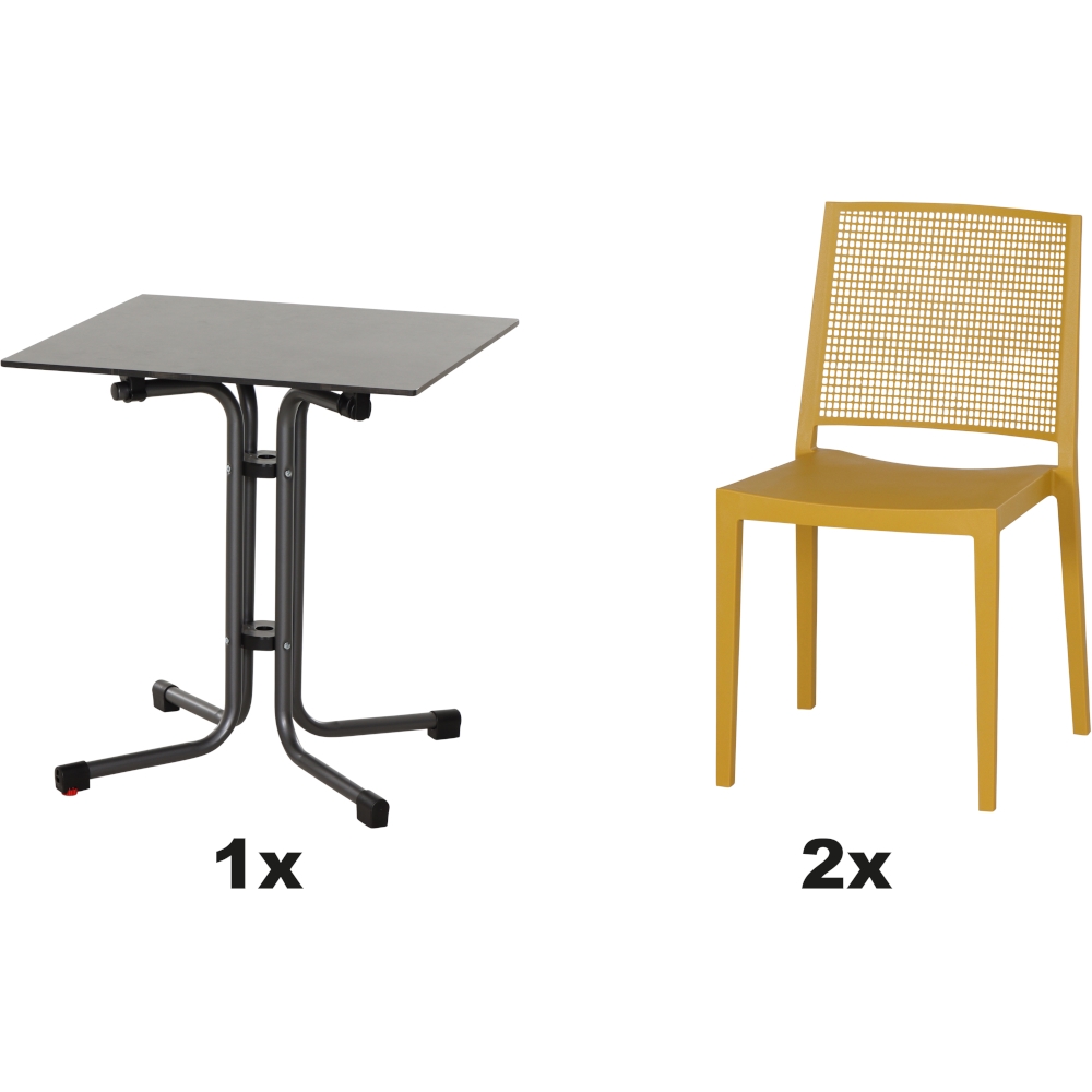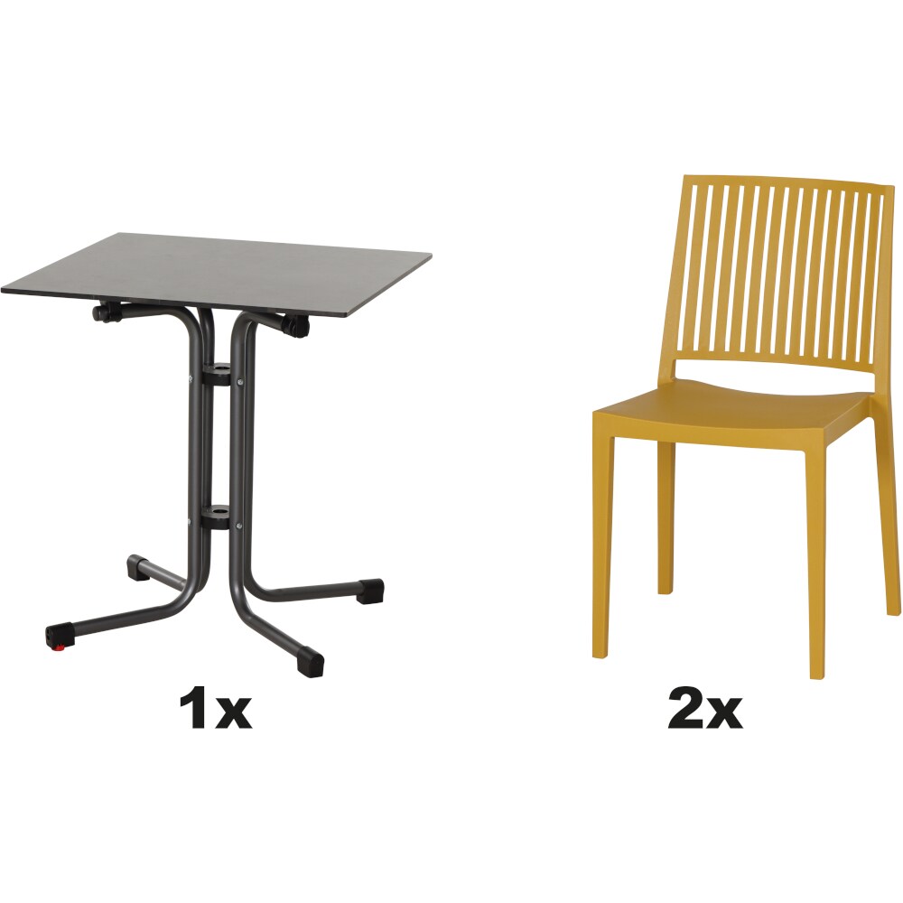 SIENA GARDEN Urban Lights Set 3teilig Square Stuhl gastrotauglich mustard mit Tisch Sola 65x65