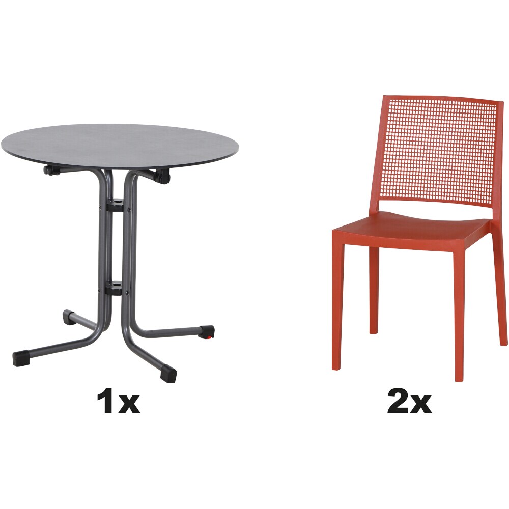 SIENA GARDEN Urban Lights Set 3teilig Square Stuhl gastrotauglich brick mit Tisch Sola Ø80
