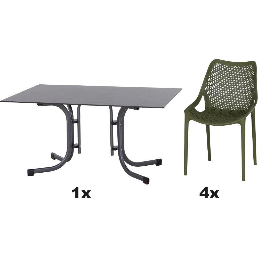 SIENA GARDEN Urban Lights Set 5teilig District gastrotauglich olive mit Tisch Sola 140x90