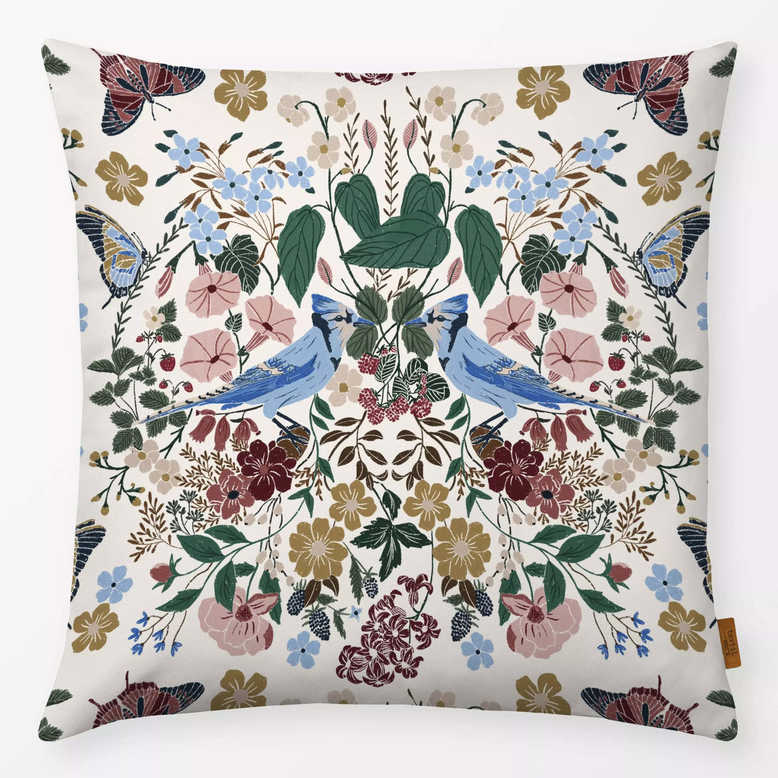 Kissen Victorian Garden Birds | light - Blumen & Florales, Retro & Vintage - von „moDeern Design Studio"; Blumen, Garten, Wi...