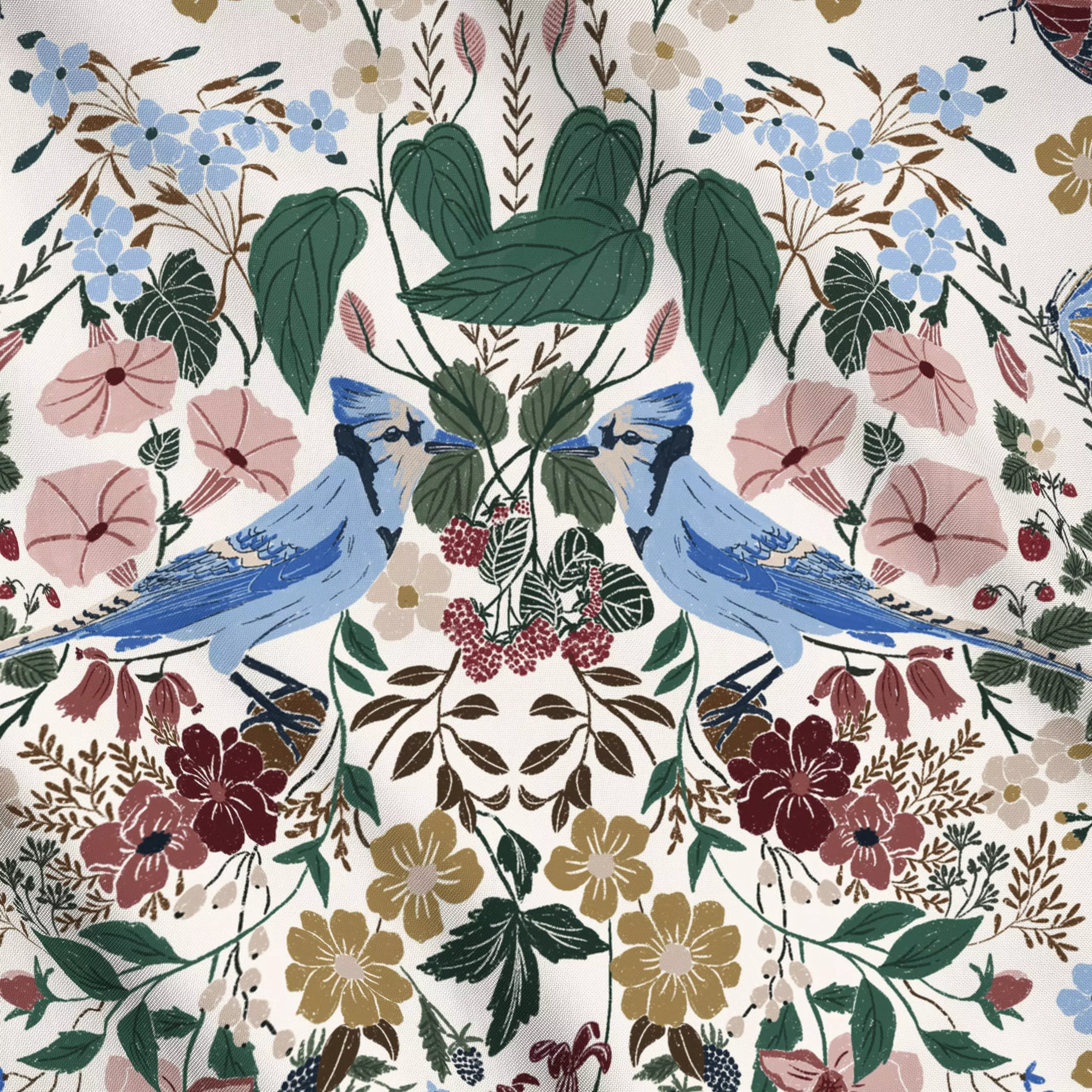 Meterware Victorian Garden Birds | light - Blumen & Florales, Retro & Vintage - von „moDeern Design Studio"; Blumen, Garten,...