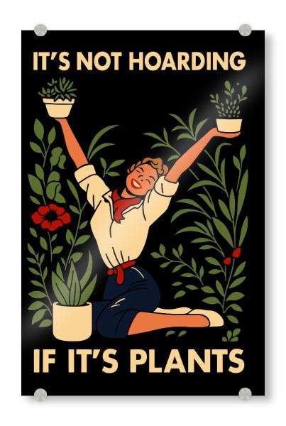 Acrylglasbild "It's Not Hoarding If It's Plants" artboxONE - Film - Plants,Hoarding,Gardening,Vintage,Illustration,Woman,Flowers,Retro,Funny
