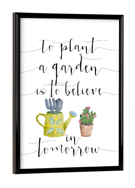 Poster mit schwarzem Rahmen "To plant a garden is to believe in tomorrow" artboxONE - Typografie,Natur,Floral
