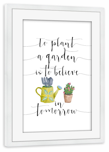 Poster mit Rahmen weiß "To plant a garden is to believe in tomorrow" artboxONE - Typografie,Natur,Floral