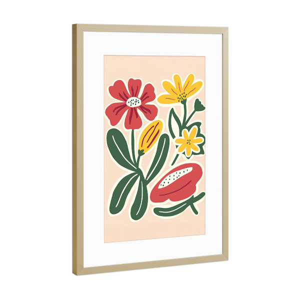 Poster mit Rahmen Gold "Playful Garden Blooms" artboxONE - Floral,Abstrakt