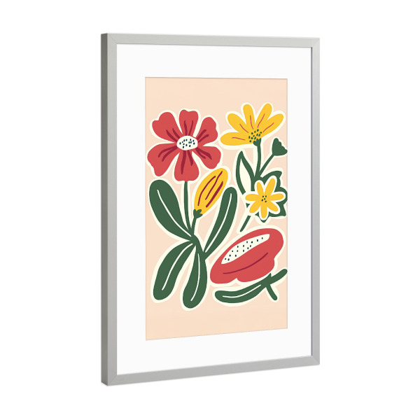 Poster mit Rahmen Silber "Playful Garden Blooms" artboxONE - Floral,Abstrakt