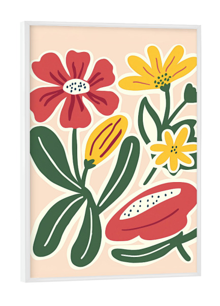 Poster mit Rahmen weiß "Playful Garden Blooms" artboxONE - Floral,Abstrakt