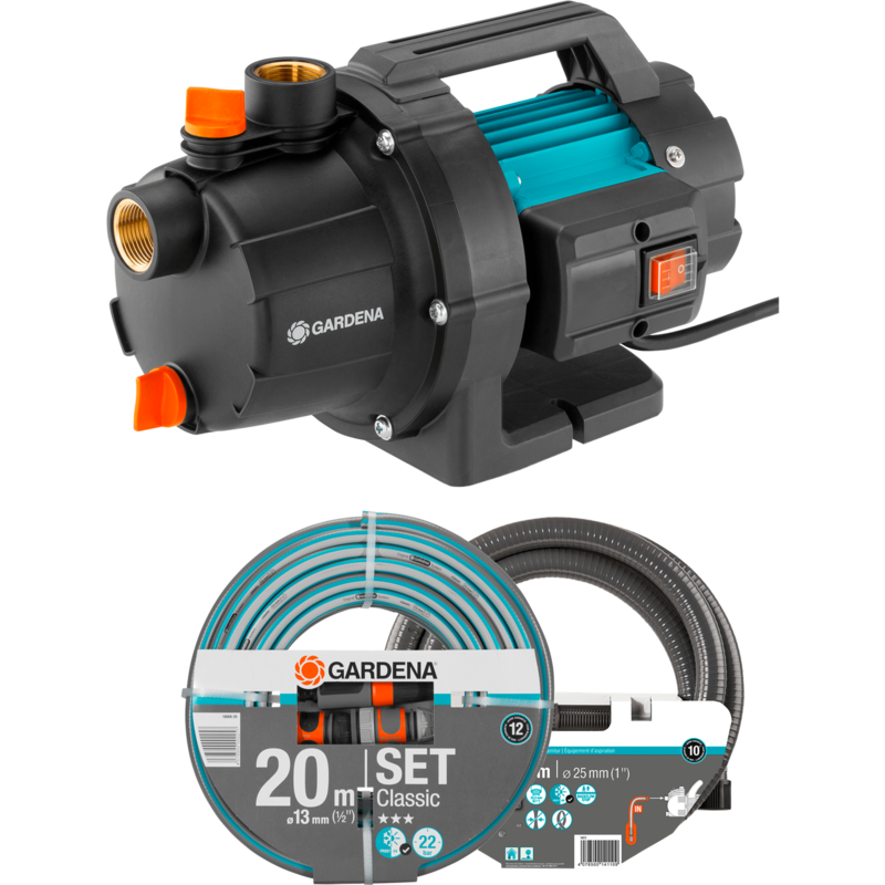 GARDENA Gartenpumpe 3000/4 BASIC Set Pumpe, türkis/schwarz, 600 Watt, inkl.