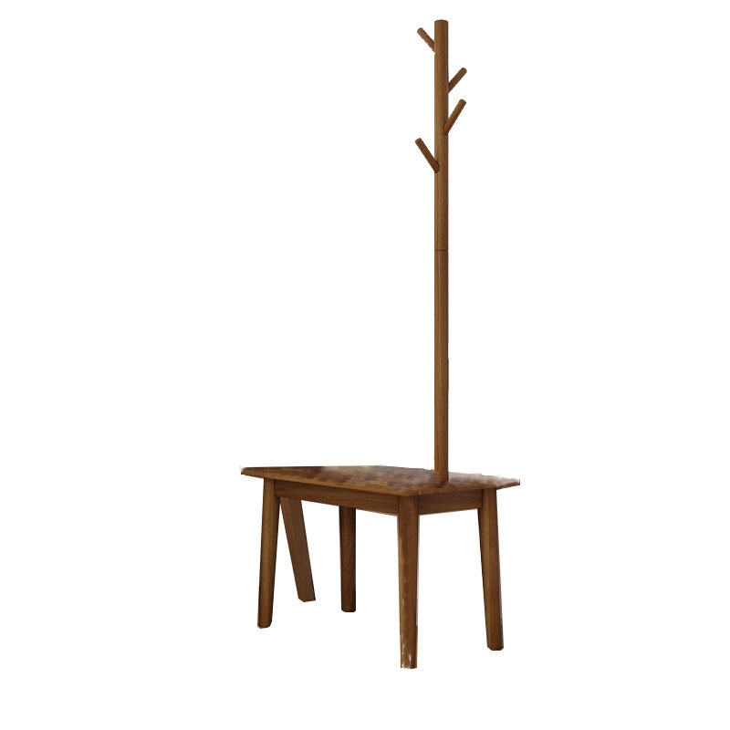 COSTWAY 3-in-1-Beistelltisch aus Massivholz, Garderobe mit Schuhbank und 3 Haken, freistehend, braun
