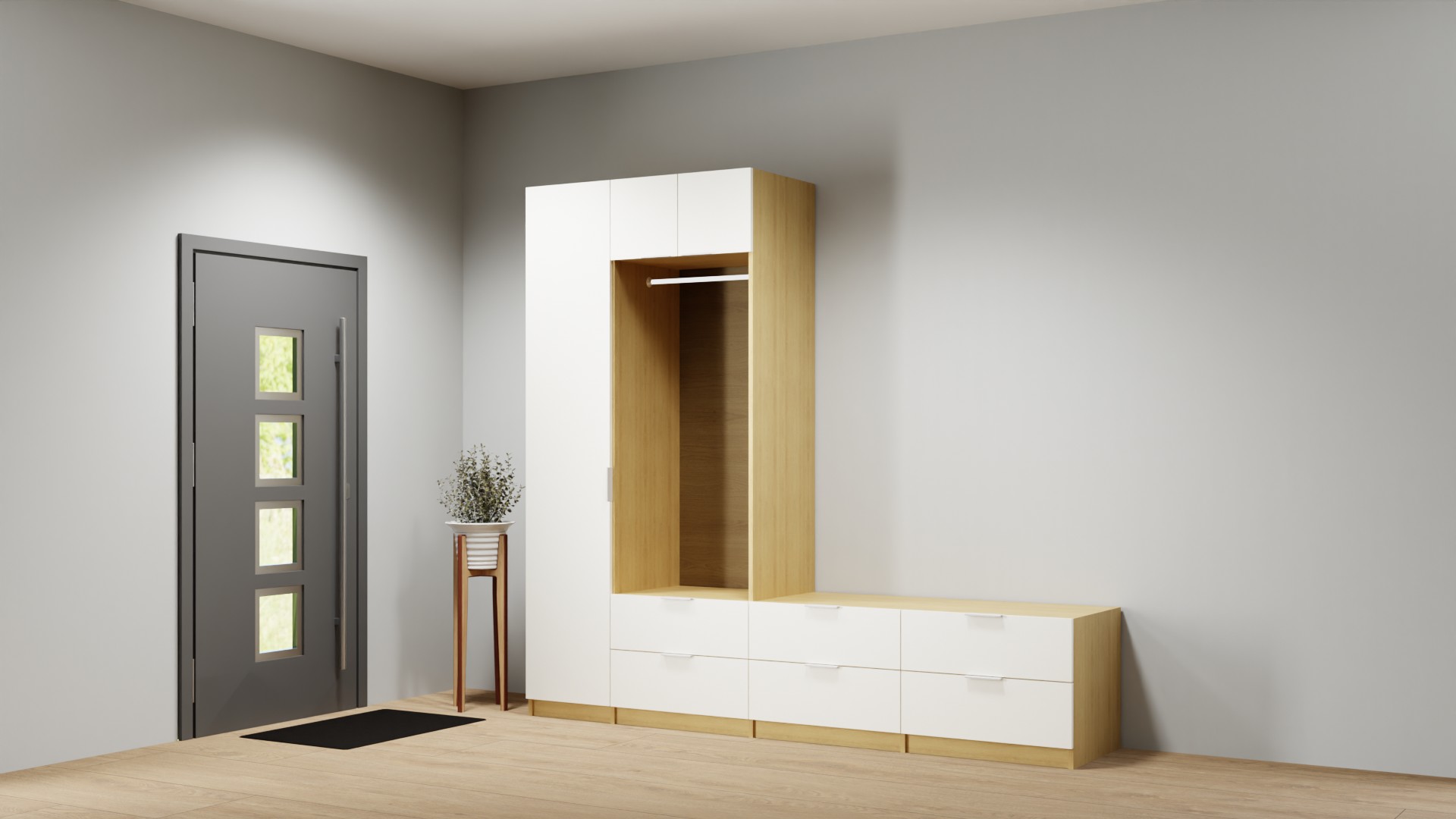 Schlichter Garderobenschrank nach Maß - Garderobe mit Ablage und weiteren Optionen Premium Dekore