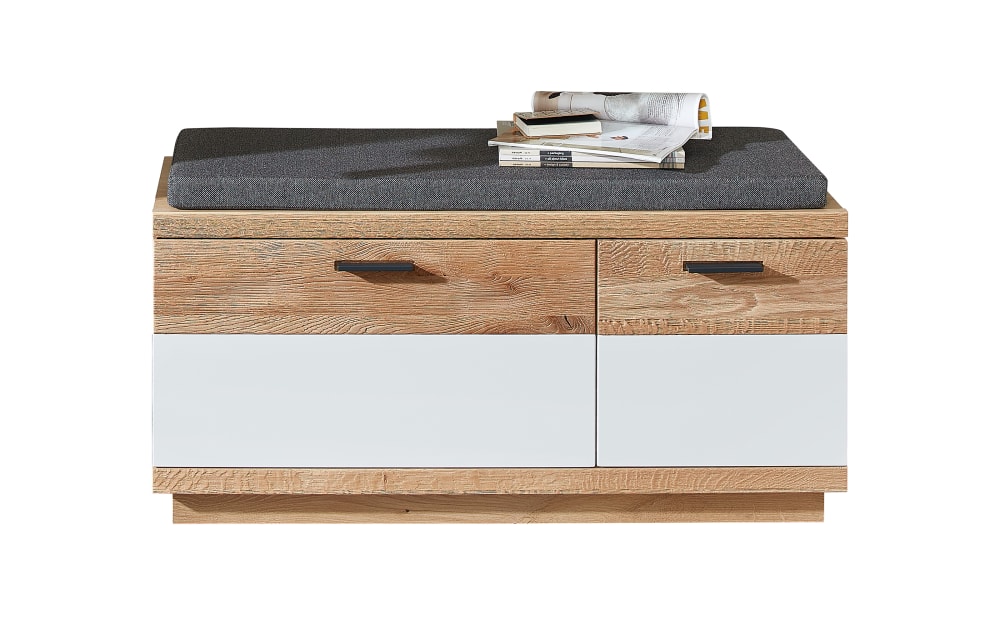 Garderobe Sitzbank "Center" in Evoke Eiche und grau Garderobenbank 100 cm inklusive Sitzkissen