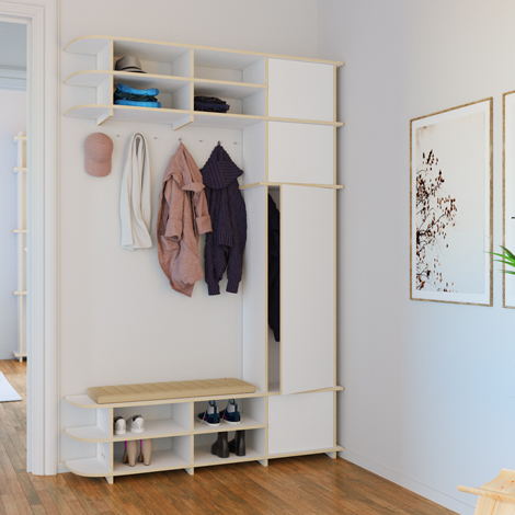 Garderobenbank nach Maß "Brama" | Konfigurierbar | Weiß Multiplex | 120x45x35 cm