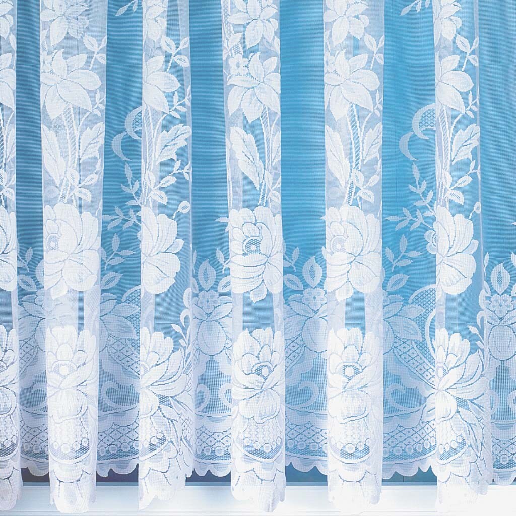 Fertig-Gardine Weiß 202 cm, Leinenoptik, mit Spitze, höhenverstellbar 75-180 cm, sofort aufhängbar, inkl. Haken, polnische Qualität
