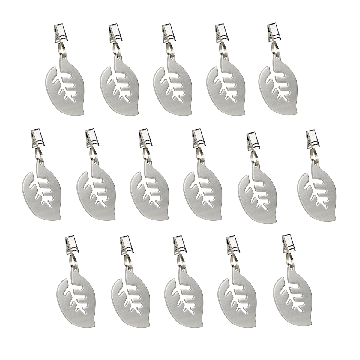 Relaxdays Tischdeckenbeschwerer, 16er Set, Blatt Motiv, Gewicht für Tischdecke, Gardinenbeschwerer, Edelstahl, silber
