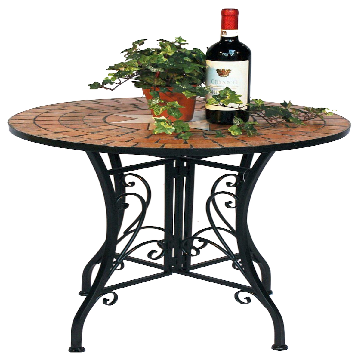Mosaik Bistrotisch, Gartentisch mit Eisengestell, Beistelltisch für Terrasse, Balkon und Garten, Terrakottarot Weiß Keramik