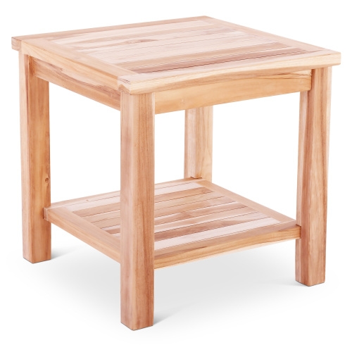 Garten Beistelltisch Teakholz 50 x 50 cm, Teakholz-Tisch mit Ablagefach, Raburg