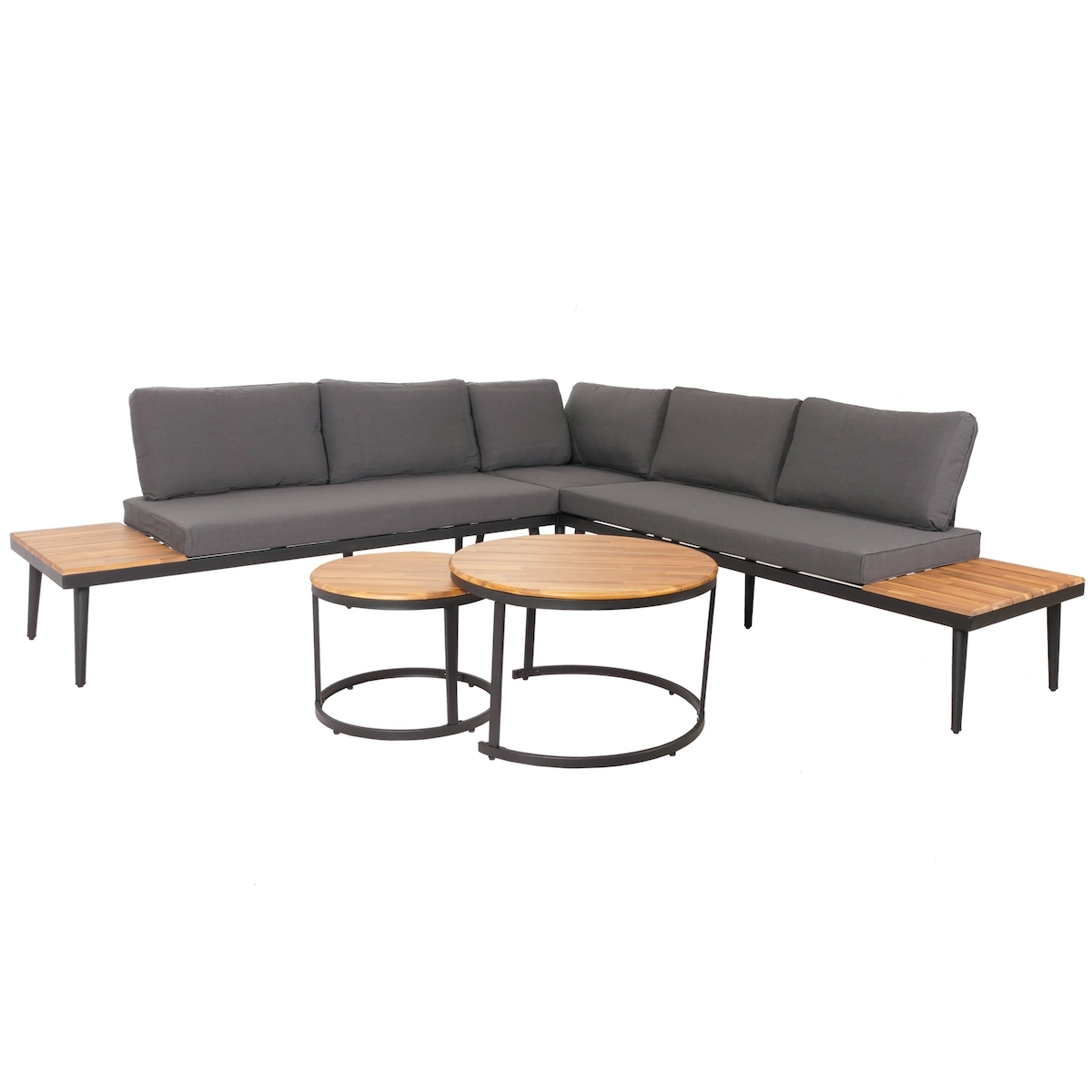 5er Set Garten Loungesessel Set Eckloungesessel inkl Kissen für 4-5 Personen mit Couchtisch und Beistelltisch wetterfeste Gartenmöbel Grau