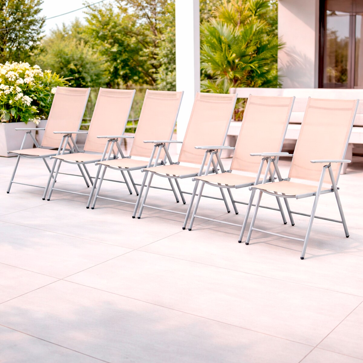 Mojawo 6er Set Garten Klappstuhl Aluminium - Textilen Silbergrau/Beige