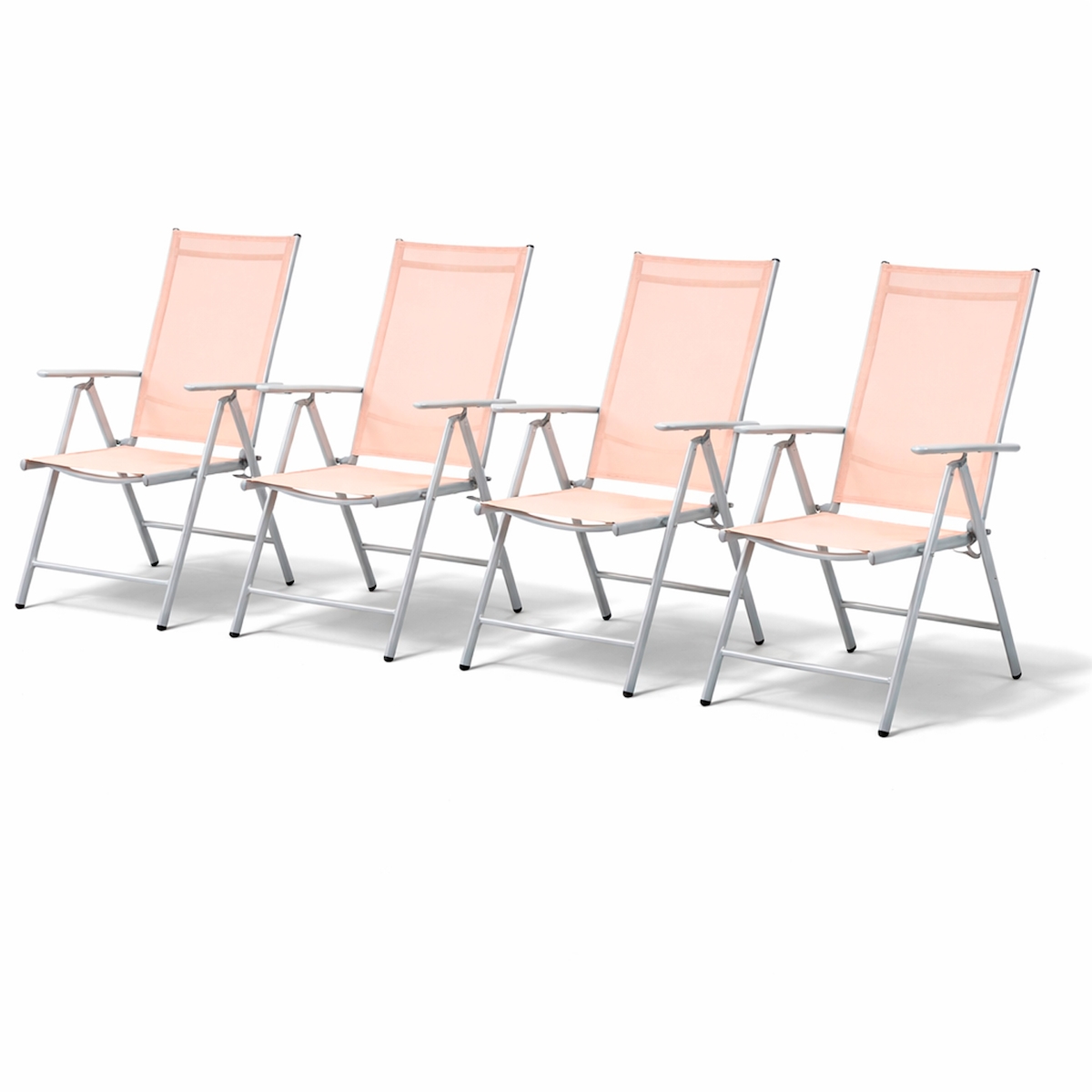 Mojawo 4er Set Garten Klappstuhl Aluminium - Textilen Silbergrau/Beige