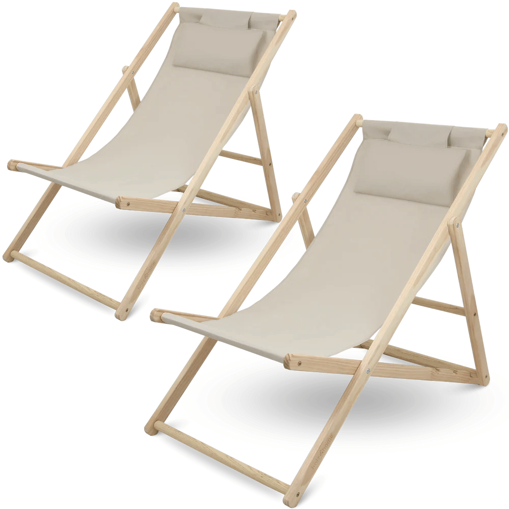 DELUKE Sonnenliege Holz klappbar FRIEDA - 2er Set Liegestuhl | Balkonliege Wetterfest Stuhl zum Sonnen Terrasse Liegestühle für Garten | Creme