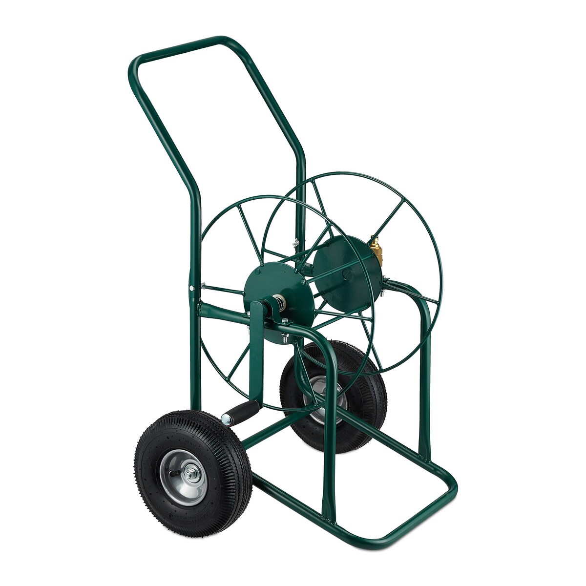 Relaxdays Schlauchwagen, bis 80 m, 2 Lufträder, Klickkupplung, Schlauchtrommel Metall, Schlauchabroller Garten, grün