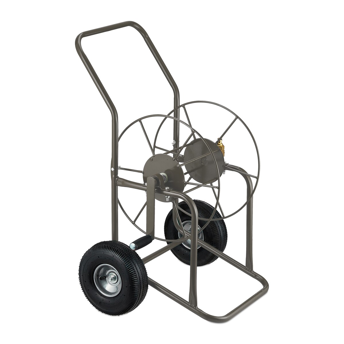 Relaxdays Schlauchwagen, bis 80 m, 2 Lufträder, Klickkupplung, Schlauchtrommel Metall, Schlauchabroller Garten, braun
