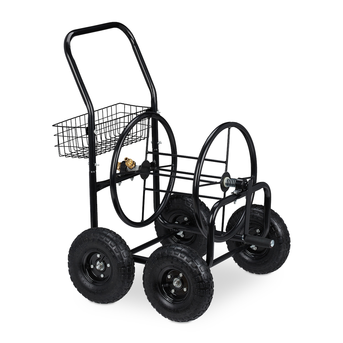 Relaxdays Schlauchwagen, bis 75 m, 4 Luftreifen, Klickkupplung, Schlauchtrommel Metall, Schlauchabroller Garten, schwarz