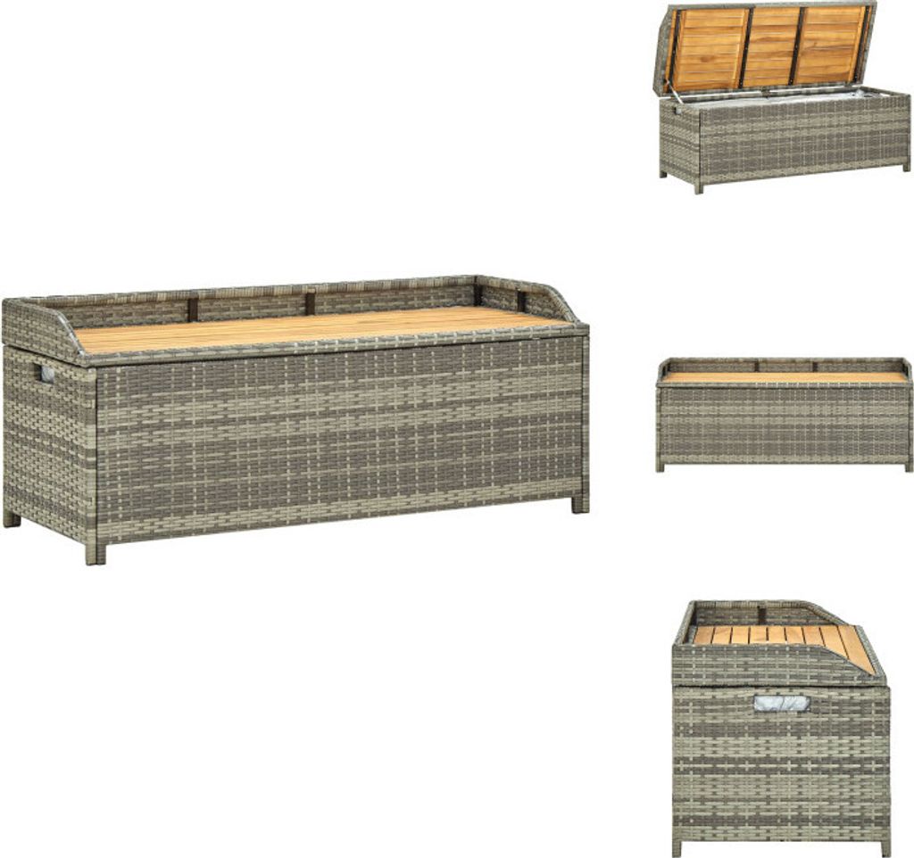 vidaXL Gartenbank mit Stauraum 120 cm Poly Rattan Grau - Aufbewahrungsbank - Aufbewahrungsbänke - Garten-Aufbewahrungsbank - Garten-Aufbewahrungsb...